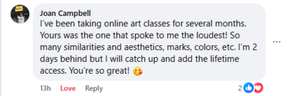 You’ll also be able to revisit all the art tutorials, live Q+As, and mindset talks anytime!