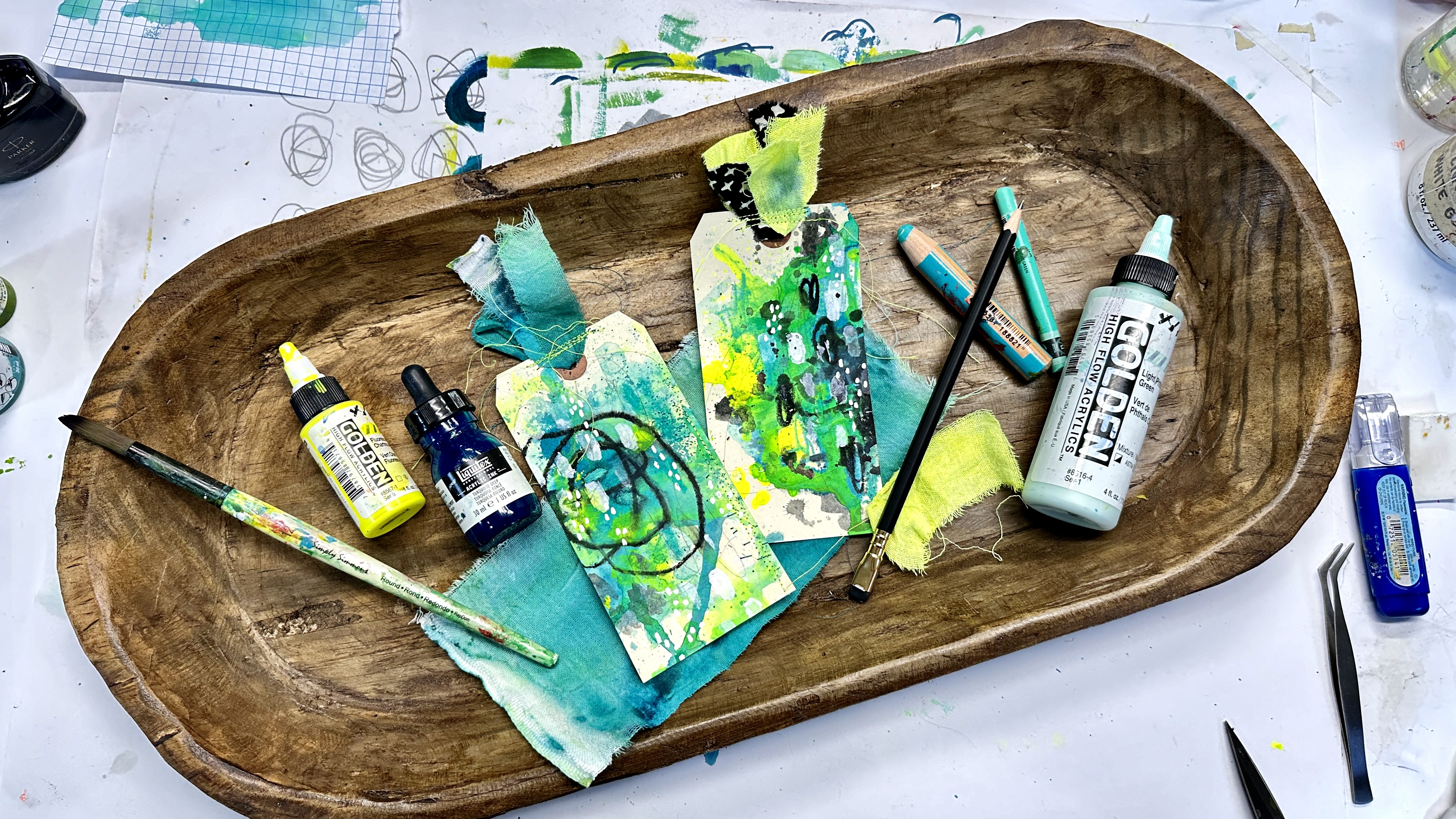 + Adding Bold Marks: This lesson emphasizes fun, improvisation, and the versatility of mixed media techniques for creative experimentation.