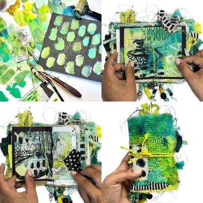 Create the structure for your BB Journal! Learn to use your new handmade fabric in conjunction with store-bought/found fabrics.