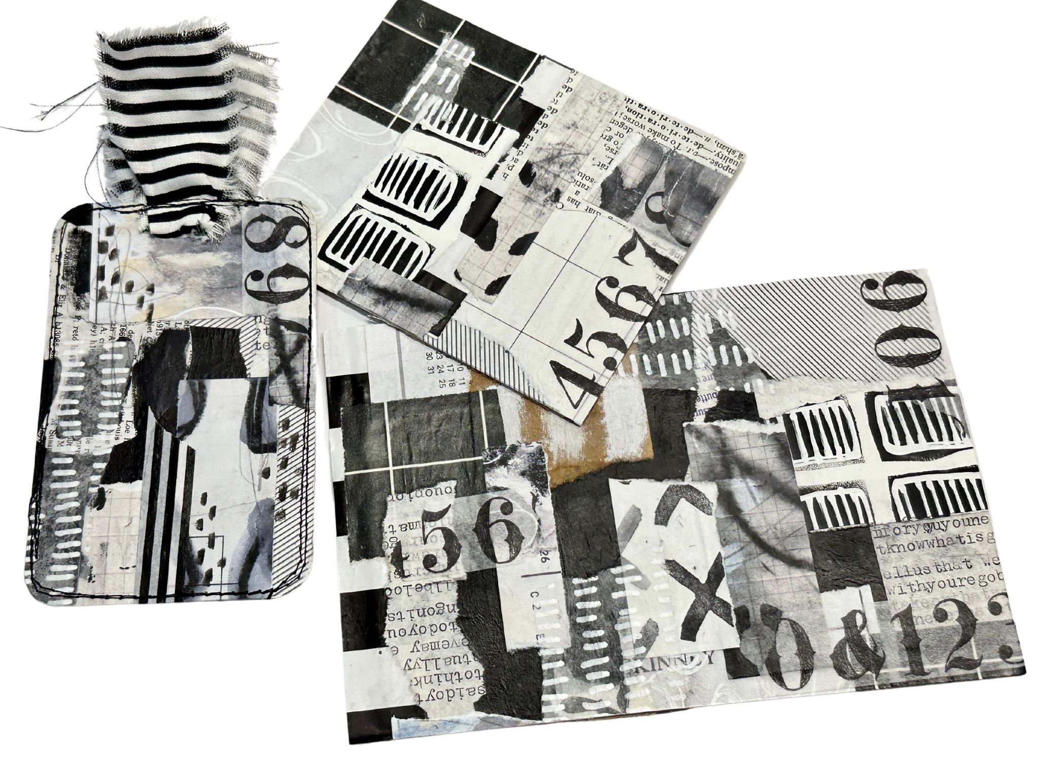 Lesson + Prompt #6 → CLUSTER: I show how I make small cluster collages combining fabric and paper.